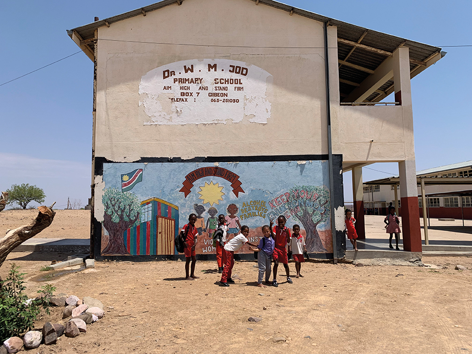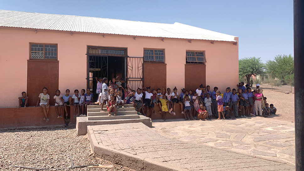 Im Rahmen der Studienreise NAMIBIA 24 haben wir am Montag, 14. Oktober 2024, die Primary School in Gibeon besucht. Die Schulleiterin Katrina !Haosemas verteilte die Gruppe auf alle Klassen, sodass wir eine Unterrichtsstunde erleben konnten.